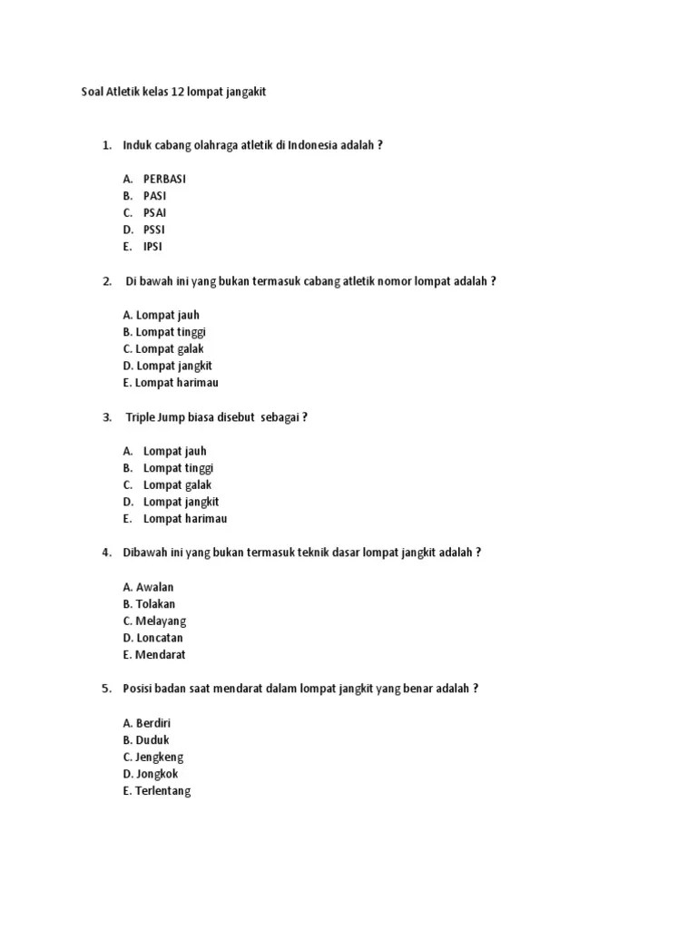 Soal Pilihan Ganda Atletik Kelas 12 - 45 Soal Dan Jawaban Tentang Tolak Peluru Pilihan Ganda Essay Muttaqin Id / Jawaban soal pilihan ganda di bawah ini dan beri tanda silang (x) pada huruf a.b.c atau d dan kerjakan dengan jujur!